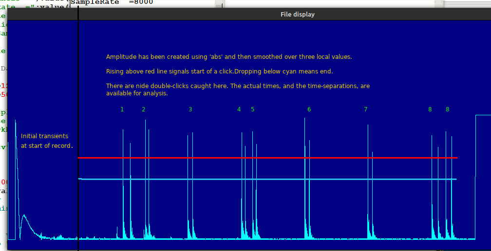 I added about 10 lines to Rod's wave analysis program. ( I included saving the amplitude as a csv file- which loads into a spreadsheet, but the OpenOffice spreadsheet was very slow in displaying this long file. Bit of a dead end)