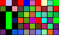 The rectangle images all represent the same program, written in the lamguage 'Piet' and named after the artist Piet Mondrian. Programs in Piet are intended to look like believable Mondrian pictures, but are executable code.