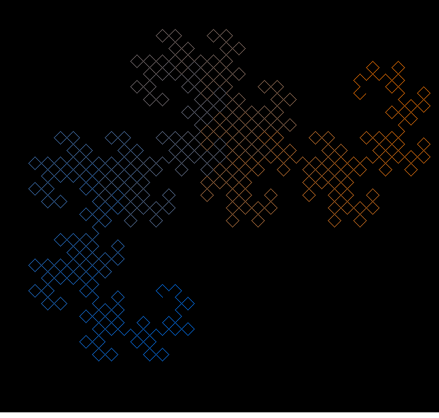 This is an interesting structure/curve, where each iteration takes you into more, spacefilling detail. Colouring adds to the effect.