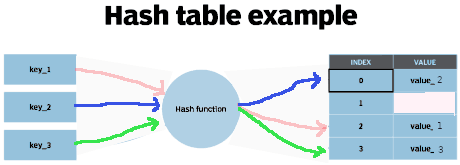The other use is to implement associative arrays ( dictionaries) of key/value pairs and be able to access them directly by the key value, rather than reading through sequentially until you find the key. Reading an array term by term until a value is found will involve on average reading and then skipping them if wrong will loop om average through half of the array. Hashing takes you either straight to the correct location, or to within a few places. Only when the table gets VERY full will it slow down.