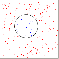 ' Here I use a circle radius 40 centre ( 80, 80) plus ( optionally) random color swaps of 20 per cent of all points.