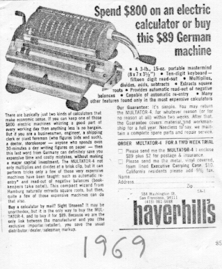 After I came to Taunton School in 1969 it was several years 'til we moved ahead. We bought one of the first calculaters for the Science Department, well before the office which still used electro-mechanical devices. It was mains powered, had fixed decimal places, and was as big as a modern desktop.