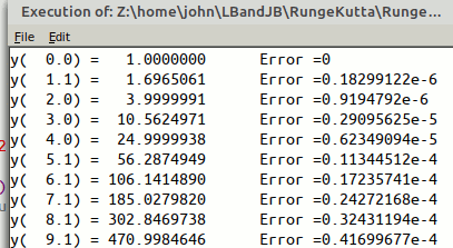 if abs( int( t) -t) <dt then print "y( "; using( "##.#", t); ") ="; using( "####.#######", y), "Error ="; yAnalytic -y