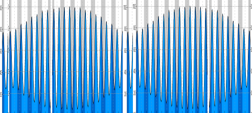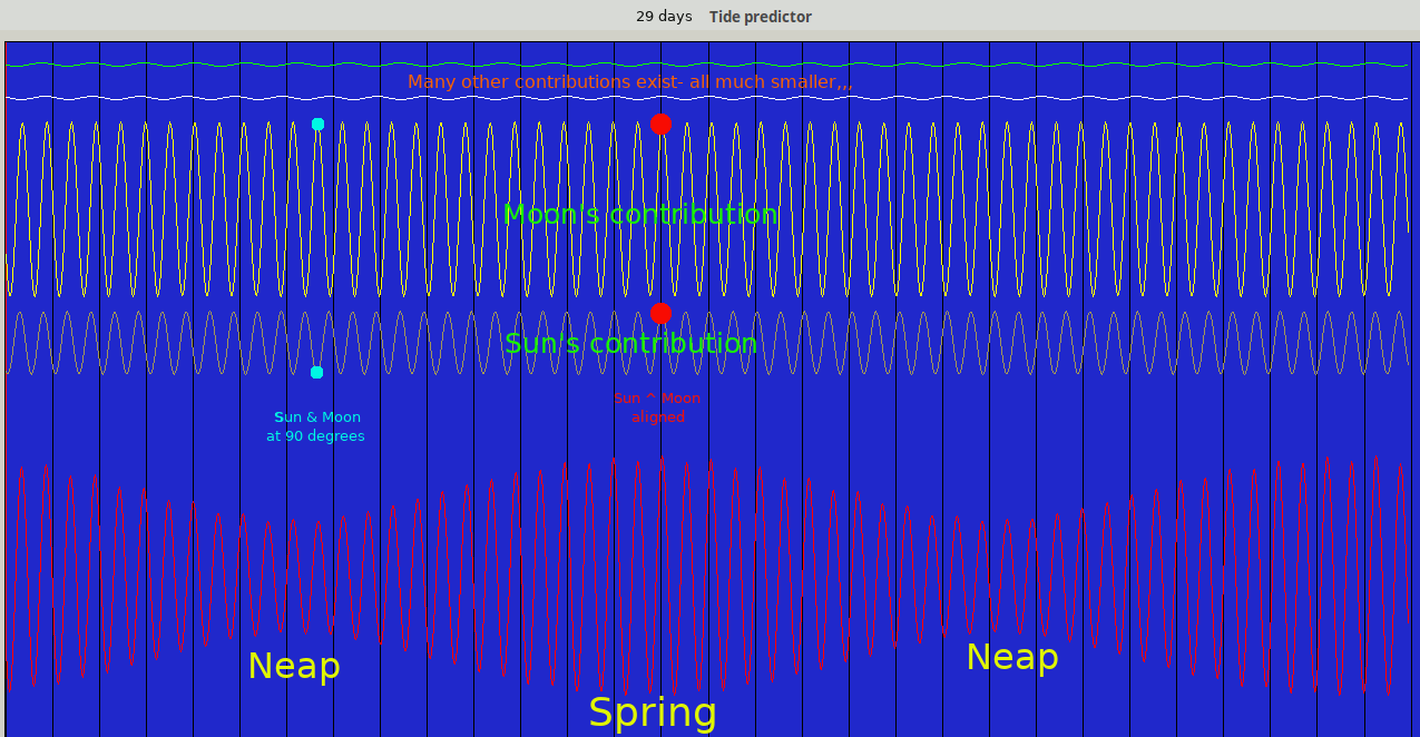 I wrote code to generate and add the first four curves, using the paid-for Admiralty constants. Note how there is always a small difference between the two tides on a given day.