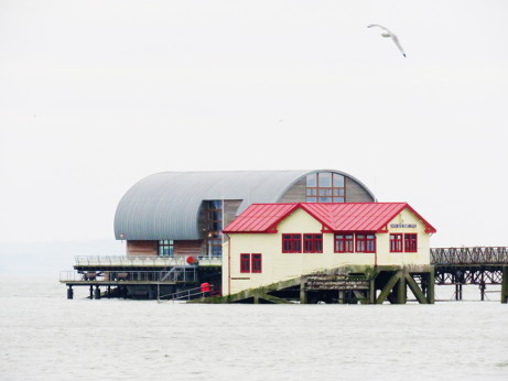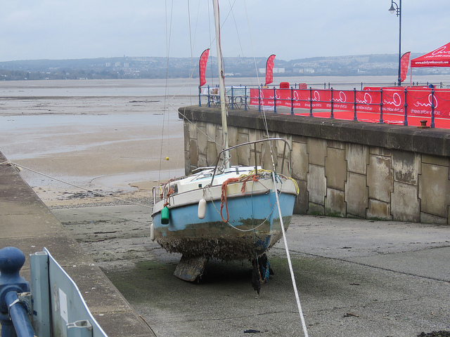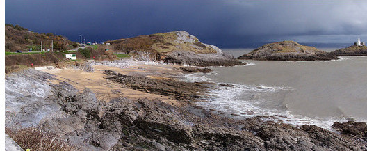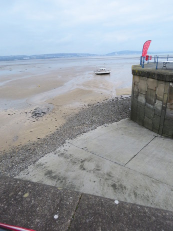 The high and low tides on the whole Severn estuary are much bigger than most other coastal areas. As a result, a given beach or cliff can look VERY different depending on the tide. Mumbles Pier old lifeboat station may appear about to be submerged, at what are called 'Spring' tides, or 6 hours later you may walk across to it with dry feet. ( See the man for scale)