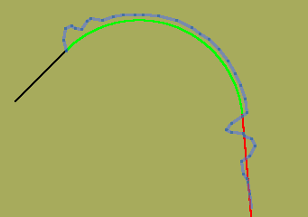 Engineers solve this disaster situation by feathering the transition from straight to curved with a 'transition curve'. See my earlier post of examples of such curves, Cornu spirals, etc on the LB Board. Much of the code is re-used from there.