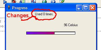 This code is for the display of a coloured-strip analogue thermometer. It uses a graduated bitmap of colours, which are hidden by a moving white box.