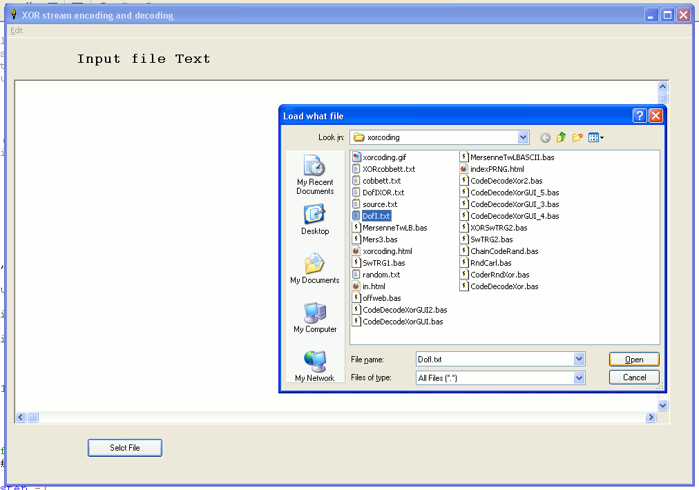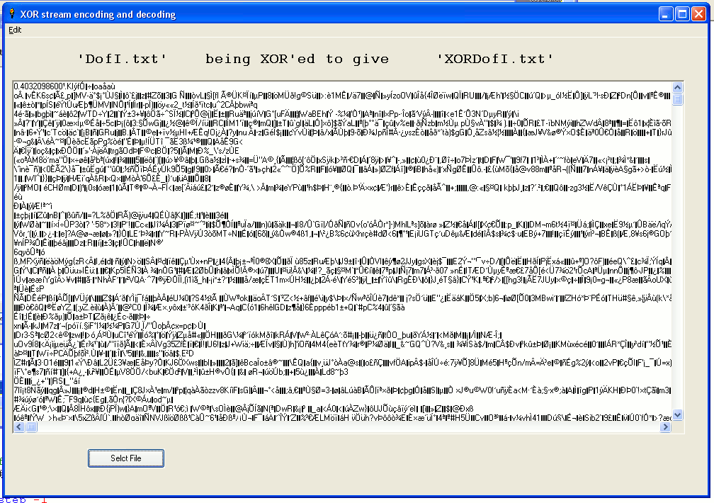 #w.st1 "'"; file$; "' being XOR'ed to give '"; nf$; "'"